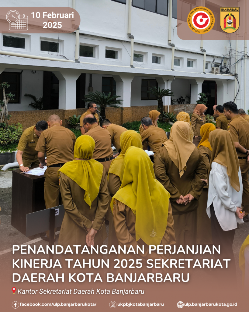 Senin, 10 Februari 2025 dilaksanakan acara Penandatanganan Perjanjian Kinerja Tahun 2025 lingkup Sekretariat Daerah Kota Banjarbaru. Perjanjian Kinerja adalah bentuk pengabdian bagi para Pegawai dalam menjalankan tugas berdasarkan target kinerja dalam satu tahun.